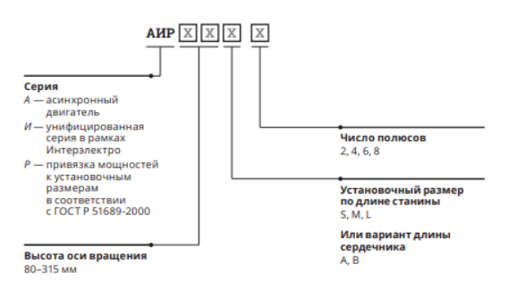 · Унификация присоединительных размеров: привязка мощности к установочным размерам выполнена в соответствии с Интерэлектро РС-3031 и ГОСТ 28330-89, что обеспечивает взаимозаменяемость с двигателями типов А, 5А, 5АМ .